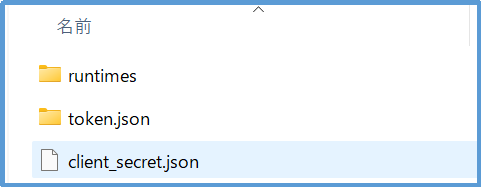 このタイミングで「token.json」フォルダが作成され、2度目以降の実行ではブラウザでの確認は行われなくなります。このフォルダを削除してしまえば、再度初回のブラウザ確認から確認することが可能。